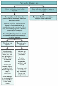 After a new prescription of valproate, women will then need to sign an Annual Risk Acknowledgement Form, while men will only need to sign a Risk Acknowledgement Form once.